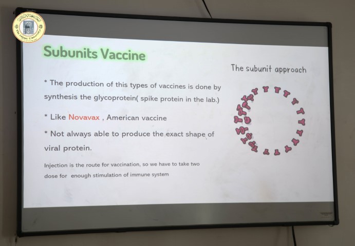 ضمن نشاطات قسم تقنيات المختبرات الطبية في كلية التقنيات الطبية، نظّم قسم تقنيات المختبرات الطبية في كلية التقنيات الطبية ندوة علمية بعنوان: “أنواع لقاحات فايروس كورونا”، لرئيس القسم الدكتور عباس فاضل الملا، حول أنواع لقاحات فايروس كورونا، والطرق المختلفة المستخدمة في إنتاجها.