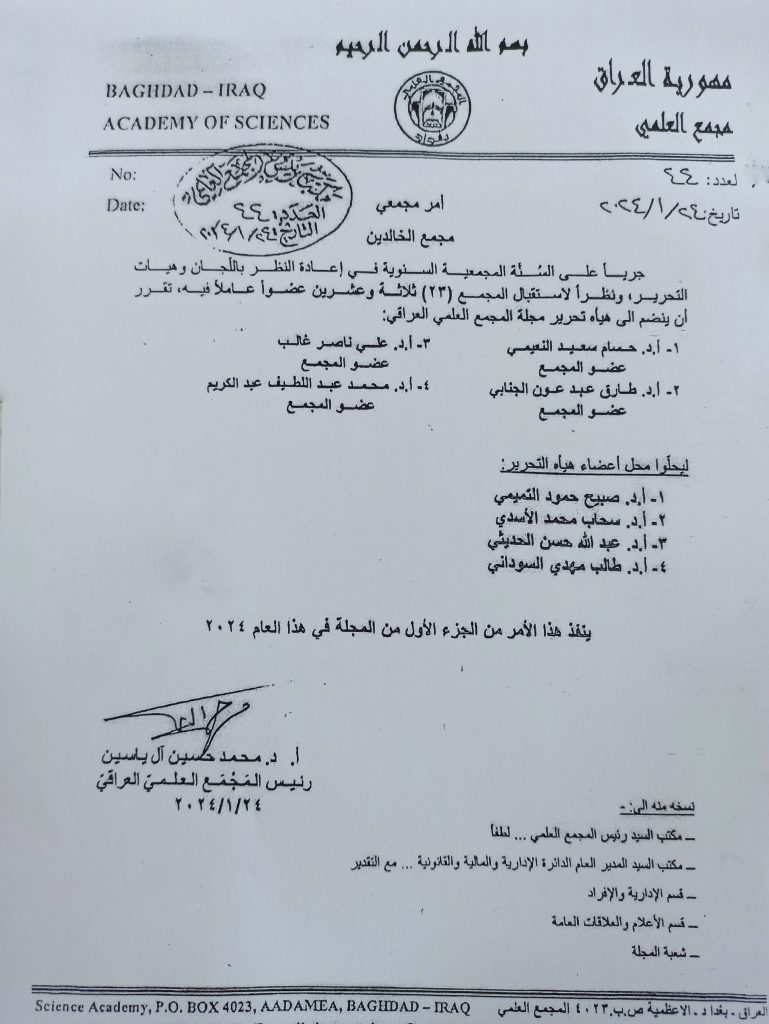 انجاز جديد يضاف الى الجامعة الاسلامية اختيار الاستاذ الدكتور علي ناصر غالب رئيس قسم الدراسات القرانية واللغوية عضوا في هيئة تحرير مجلة المجمع العلمي العراقي