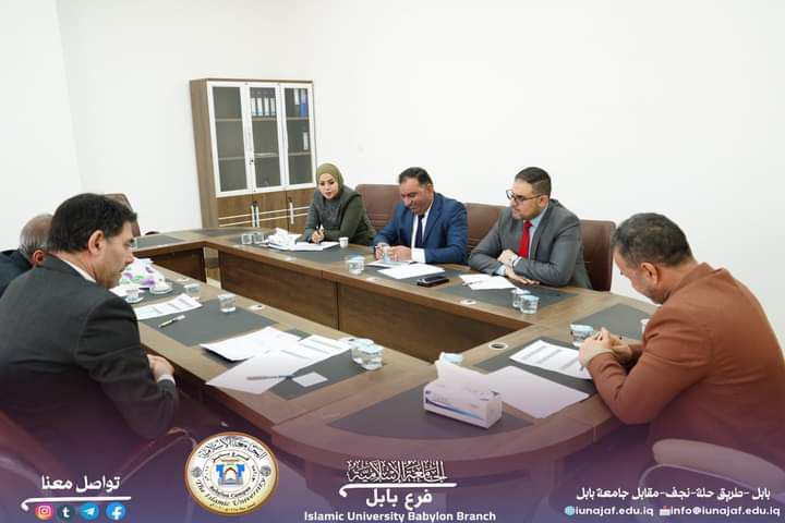 عقدت رئاسة الجامعة الإسلامية فرع بابل ٫ اجتماعا موسعا مع السادة والسيدات المكلفين بتدريس المواد التقويمية لقسم القانون ٫ وقد ترأس الاجتماع أ.د حيدر القريشي رئيس فرع الجامعة الإسلامية في بابل وبحضور الأساتذة تدريسي المواد التقويمية.