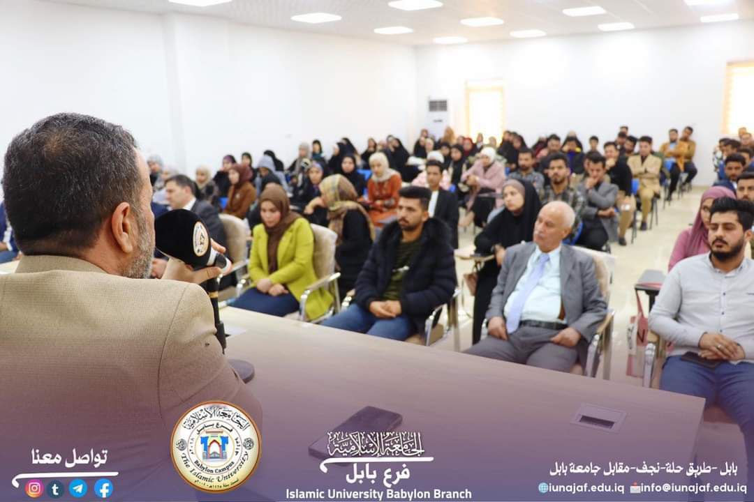 برعاية السيد رئيس الجامعه الإسلامية فرع بابل الأستاذ الدكتور حيدر القريشي أقامت الجامعة الاسلامية وبالتعاون مع مؤسسة اليتيم الخيرية في بابل ندوه تثقيفية بما يخص كفالة الأيتام بوصفها واجب شرعي وأخلاقي وحضرها عدداً من الكادر التدريسي والإداري في الجامعة واستقبلت الجامعه عدد من البراعم (الأيتام )وأقيمت لهم احتفالية وزعت فيها عليهم الهدايا العينية كما أقامت لهم جولة في أقسام الجامعة الدارسية ومختبراتها العلمية واستضافتهم في النادي الطلابيّ