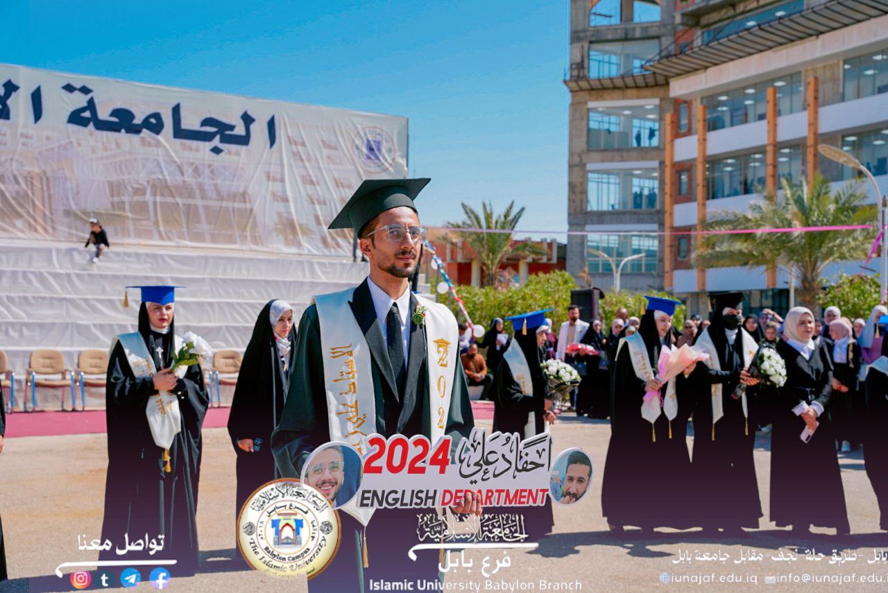 برعاية رئيس الجامعة الاسلامية/ فرع بابل الأستاذ الدكتور حيدر القريشي وفي ختام الأحتفال بتخرج دفعة ٢٠٢٣-٢٠٢٤ أجتمع طلبة قسم التربية الإنجليزية لإلتقاط صورة التخرج الرسمية إعلاناً عن أنتهاء مسيرتهم العلمية .