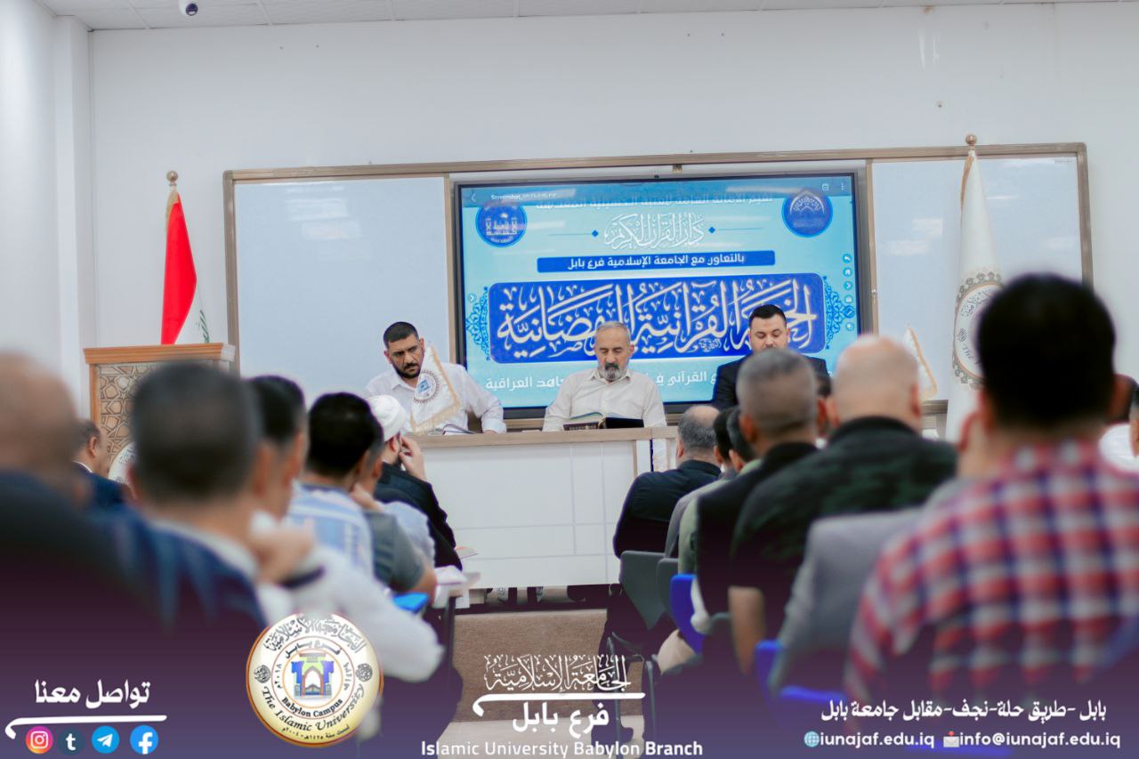 أستمرار الختمة القرانية الرمضانية في الجامعة الإسلامية فرع بابل وبالتعاون مع دار القران الكريم وبحظور وفد العتبة الحسينية المقدسة