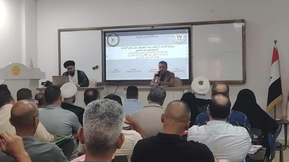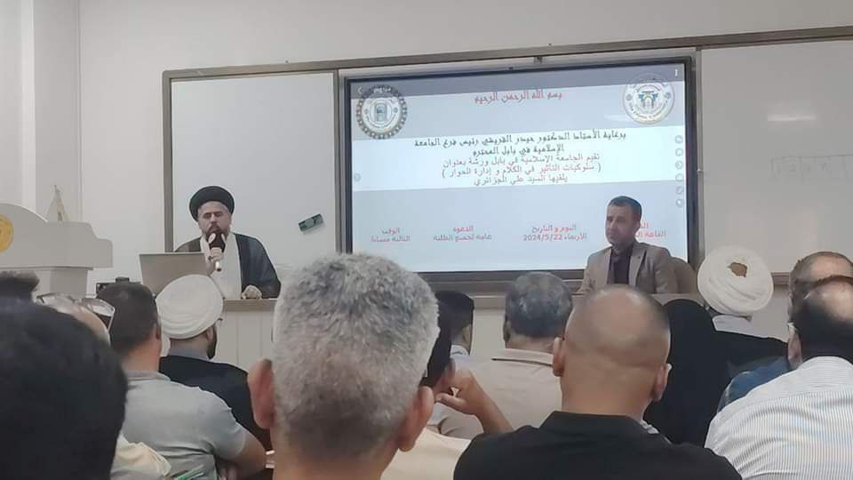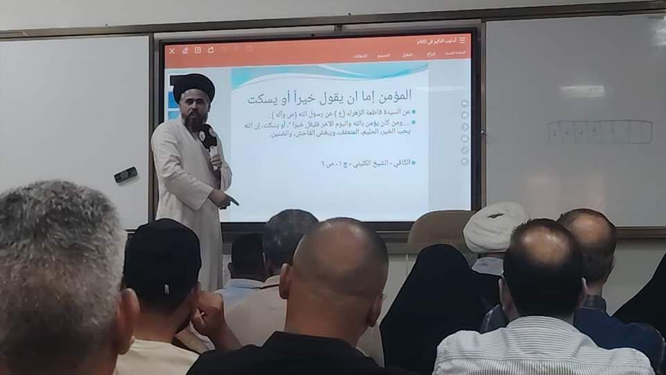 إقامت الجامعة الإسلامية في بابل ورشة بعنوان سلوكيات التأثير في الكلام وإدارة الحو ارإلقاها السيد علي الجزائري محاضرة متنوعة استهدفت :