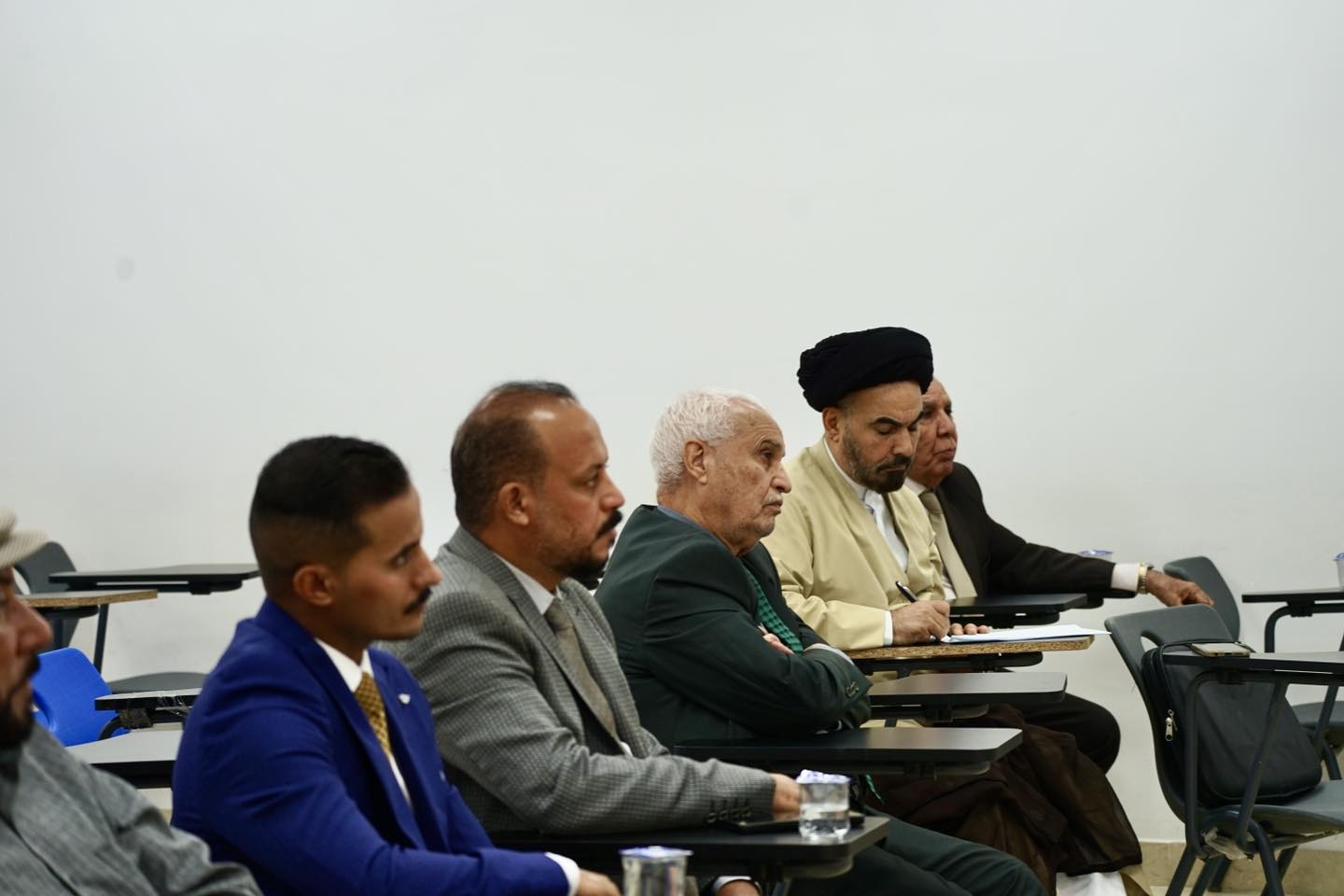 بحضور المساعد الاداري الدكتور ( عبد الزهرة الخفاجي ) والدكتور ( سامي المعموري ) وعدد من التدرسين والتدرسيات . في قاعة المحاضرات الساعة العاشرة من صباح يوم الاثنين الموافق ٢٠٢٤/١٠/١٤