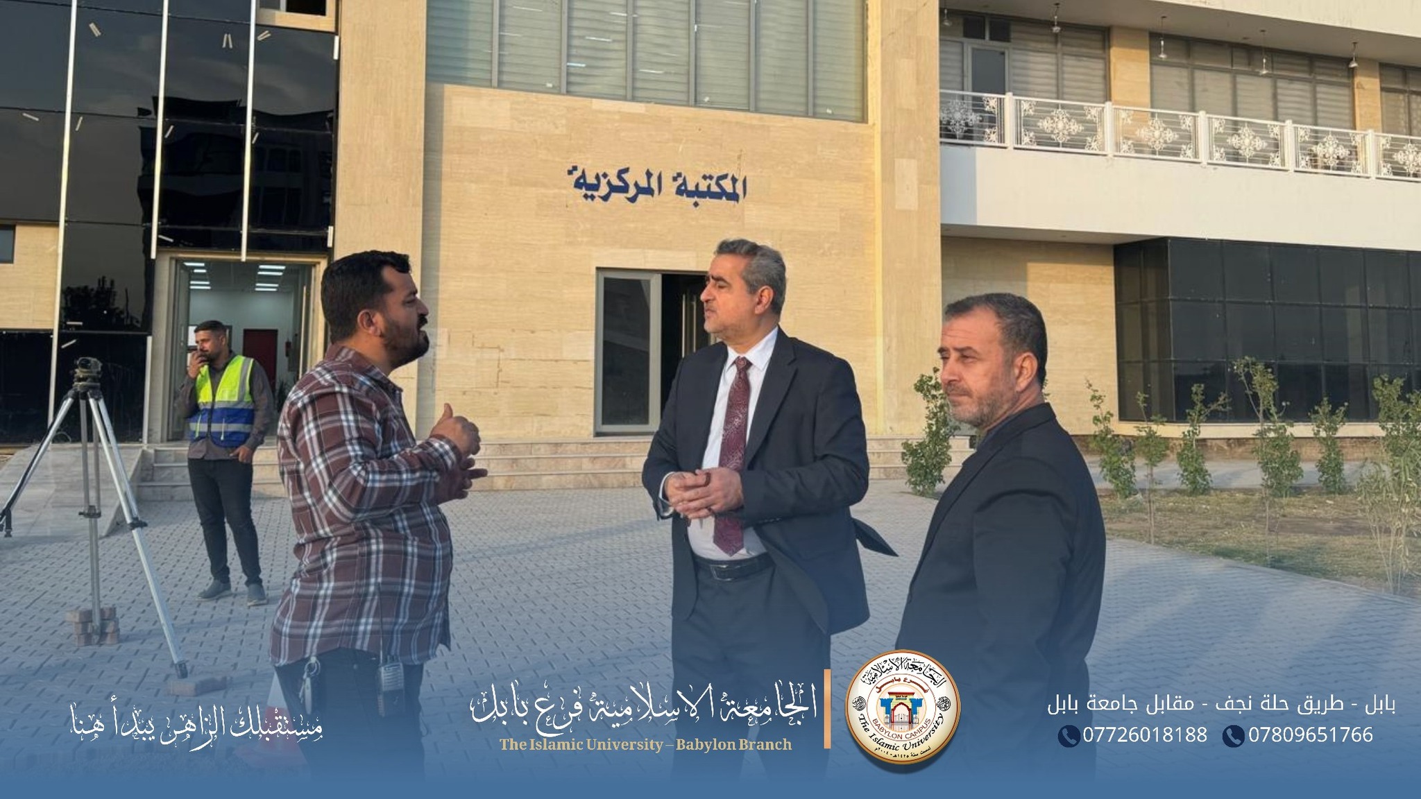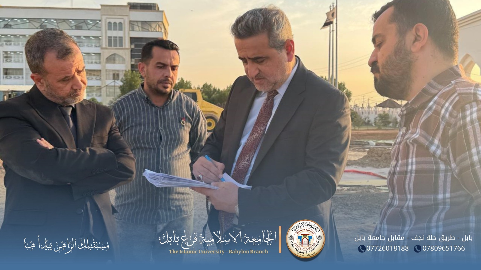 زار السيد رئيس الجامعة الإسلامية الأم في النجف الأشرف، الأستاذ الدكتور عمار عبد الأمير السلامي المحترم، فرع الجامعة في بابل للاطلاع ميدانياً على التقدم المحرز في تطوير البنى التحتية، حيث اطّلع السيد رئيس الجامعة على الأعمال الإنشائية الجارية، ومشاريع التطوير العمراني، إضافة إلى متابعة المساحات الخضراء، مؤكداً حرص الجامعة على توفير بيئة أكاديمية متكاملة تواكب التطور العلمي وتلبي متطلبات الاعتماد المؤسسي.
