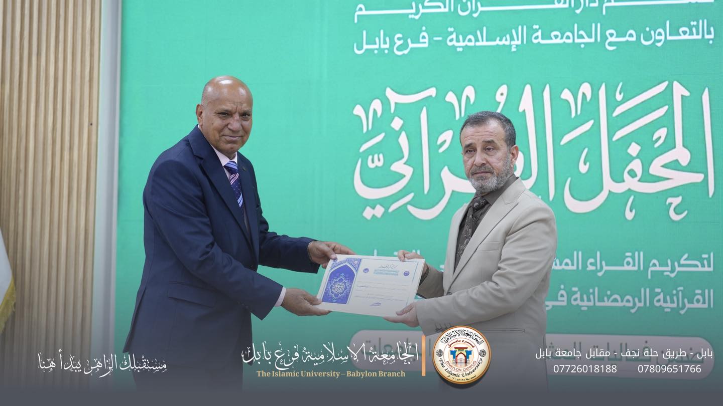 بنفحاتٍ قرآنيةٍ تعبق بالروح، أقامت الأمانة العامة للعتبة الحسينية المقدسة – قسم دار القرآن الكريم، وبالتعاون مع الجامعة الإسلامية / فرع بابل، محفلها القرآني المبارك، تكريمًا للقراء المشاركين في الختمات الرمضانية التي أضاءت قلوب الجامعات بنور الذكر الحكيم.