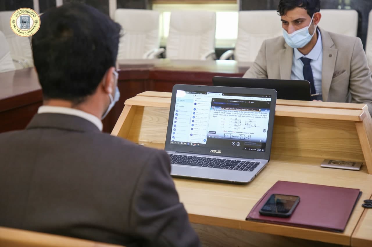 The ministerial committee responsible for the follow-up of e-education in Iraqi universities visited the follow-up room of e-education at the Islamic University this morning, which coincided with 3-3-2021 AD and in the presence of The President of the University Dr. Ammar Abdul Amir Al Salami and Dr. Ahmed Khayat, the university’s e-education officer and dean of the faculty of law, Mr. Mohammed Taha Husseini, and all e-education officials at the university.